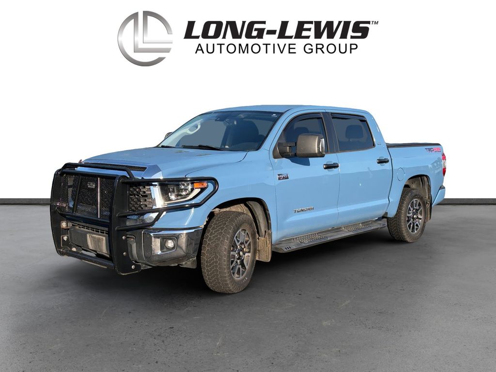 2020 Toyota Tundra SR5 Blue SR5 4WD 6-Speed Automatic Electronic i-Force 5.7L V8 DOHC 32V LEV 4WD, Black Cloth, 18" Styled Steel Wheels, 3-Passenger Front Bench Seat, 38 Gallon Fuel Tank Capacity, 4-Wheel Disc Brakes, 4.30 Axle Ratio, 9 Speakers, ABS brakes, Air Conditioning, All Weather Floor Liner & Door Sill Protector Pkg, AM/FM radio: SiriusXM, Anti-Theft Immobilizer w/Alarm, Apple CarPlay/Android Auto, Auto High-beam Headlights, Auto-Dimming Rear-View Mirror, Auto-dimming Rear-View mirror, Bedside TRD Off Road Decal, Blind Spot Monitor w/Rear Cross Traffic Alert, Brake assist, Center Console Tray, Chrome Exhaust Tip, Color-Keyed Power Heated Exterior Mirrors, Color-Keyed Rear Bumper, Compass, Deck Rail System, Delay-off headlights, Driver door bin, Driver vanity mirror, Dual front impact airbags, Dual front side impact airbags, Electronic Stability Control, Emergency communication system: Safety Connect with 1-year trial, Exterior Parking Camera Rear, Fabric Seat Trim, Fabric Seat Trim w/TRD Off Road/TRD Sport Packages, Front & Rear Clearance Backup Sonar, Front anti-roll bar, Front Bucket Seats, Front Center Armrest w/Storage, Front Door Smart Key System, Front fog lights, Front reading lights, Front wheel independent suspension, Fully automatic headlights, Garage door transmitter: HomeLink, Heated door mirrors, HomeLink Universal Transceiver, Illuminated entry, Knee airbag, LED Headlights w/Black Sport Trim, Low tire pressure warning, Occupant sensing airbag, Outside temperature display, Overhead airbag, Overhead console, Panic alarm, Passenger door bin, Passenger vanity mirror, Power door mirrors, Power steering, Power windows, Push Button Starting System, Radio data system, Radio: Audio Plus AM/FM/HD Radio, Radio: Premium Audio w/Dynamic Navigation, Rear reading lights, Rear seat center armrest, Rear step bumper, Rear window defroster, Remote Connect, Remote keyless entry, Safety Connect, Service Connect, SiriusXM Radio, Speed control, Speed-sensing steering, Split folding rear seat, SR5 Convenience Package, SR5 Upgrade Package, Steering wheel mounted audio controls, Tachometer, Tilt steering wheel, Traction control, Trail-Tuned Bilstein Shock Absorbers, TRD Off Road Floor Mats, TRD Off-Road Plus Package, Trip computer, Urethane Tilt/Telescopic Steering Wheel, Variably intermittent wipers, Voltmeter, Wheels: 18" Split 5-Spoke TRD Off Road Alloy, Wide Angle LED Front Fog & Driving Lights, 4WD, Black Cloth.