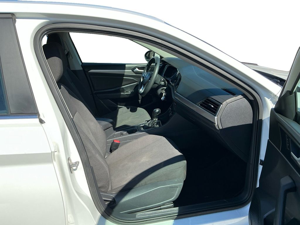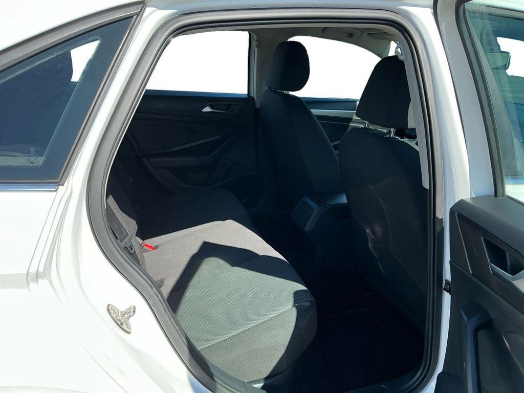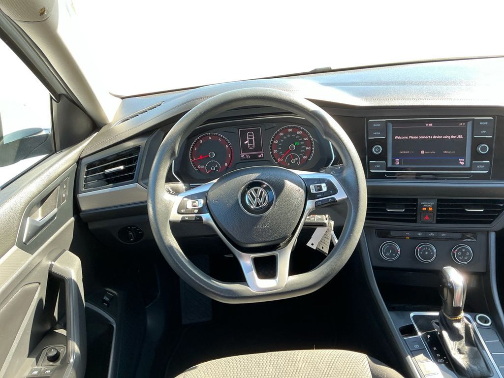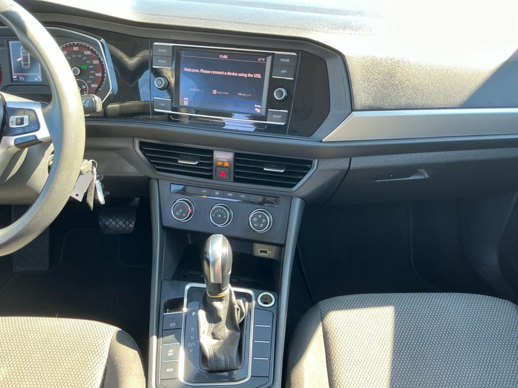 2019 Volkswagen Jetta 1.4T S White 1.4T S FWD 8-Speed Automatic with Tiptronic 1.4L TSI Cloth, 4 Speakers, 4-Wheel Disc Brakes, ABS brakes, Air Conditioning, Alloy wheels, AM/FM radio, Brake assist, Bumpers: body-color, Cloth Seat Trim, Delay-off headlights, Driver door bin, Driver vanity mirror, Dual front impact airbags, Dual front side impact airbags, Electronic Stability Control, Exterior Parking Camera Rear, Front anti-roll bar, Front Bucket Seats, Front Center Armrest, Front Comfort Seats, Front wheel independent suspension, Fully automatic headlights, Illuminated entry, Low tire pressure warning, Occupant sensing airbag, Outside temperature display, Overhead airbag, Panic alarm, Passenger door bin, Passenger vanity mirror, Power door mirrors, Power steering, Power windows, Radio data system, Radio: Composition Color w/6.5" Touchscreen, Rear anti-roll bar, Rear reading lights, Rear window defroster, Remote keyless entry, Speed control, Speed-sensing steering, Split folding rear seat, Steering wheel mounted audio controls, Tachometer, Telescoping steering wheel, Tilt steering wheel, Traction control, Trip computer, Variably intermittent wipers, Wheels: 16" Silver Rama, Cloth.
