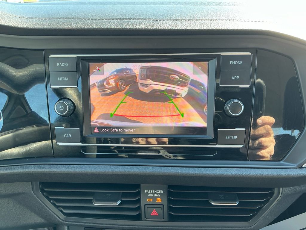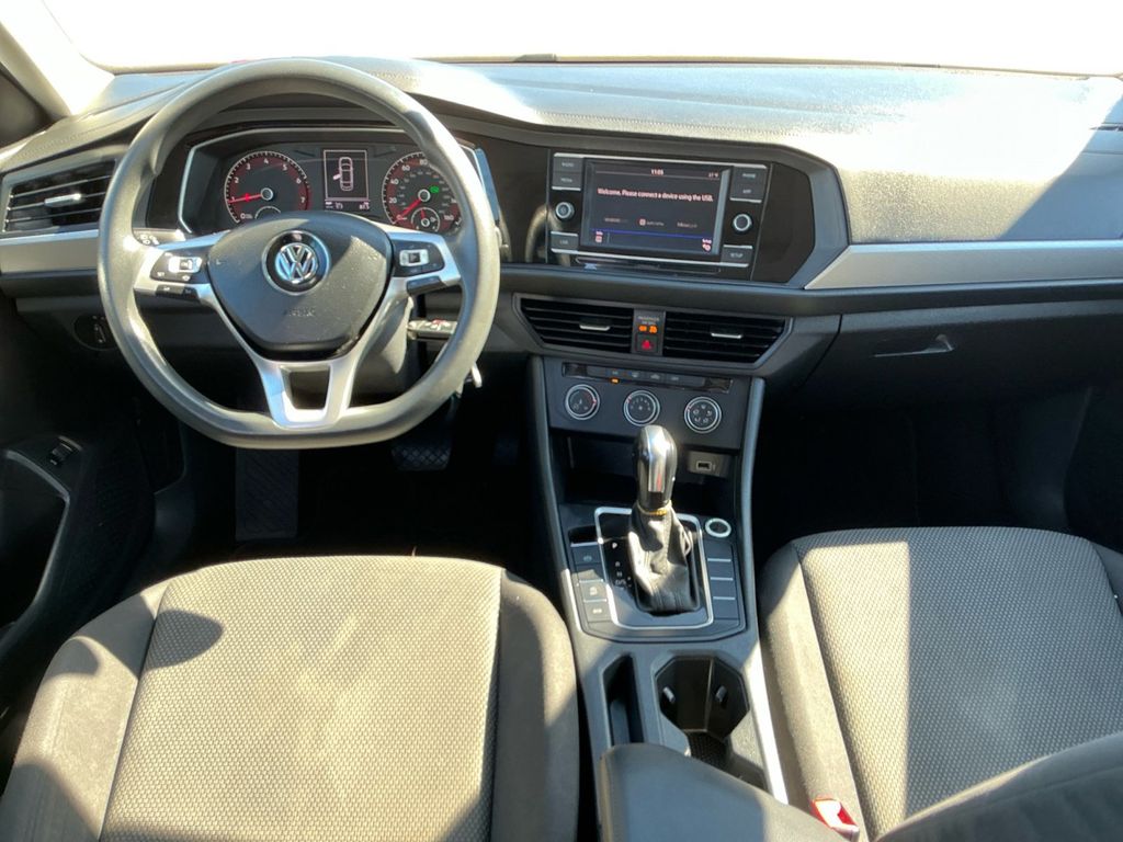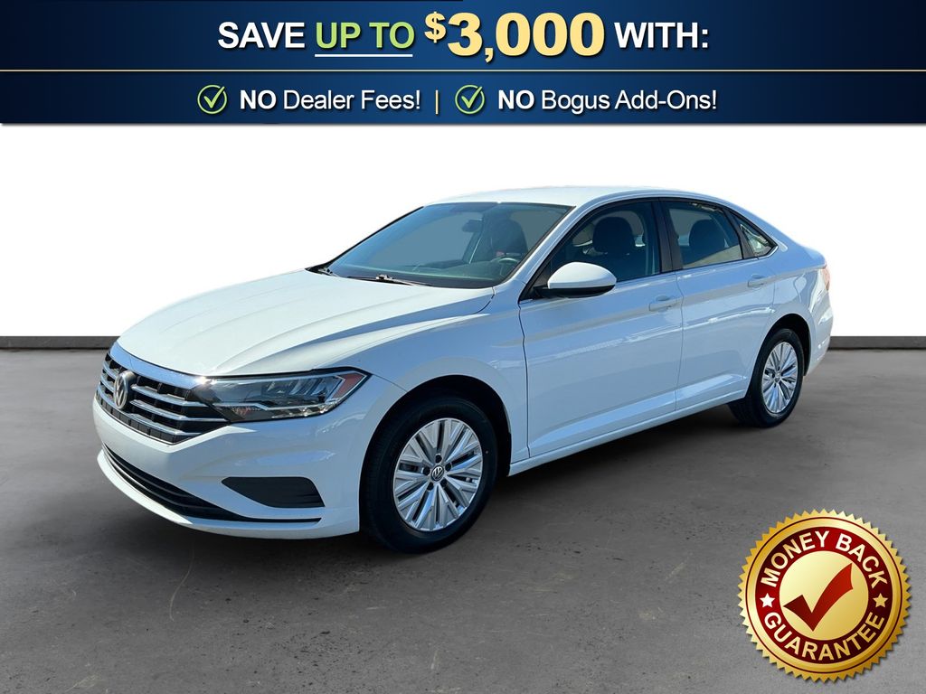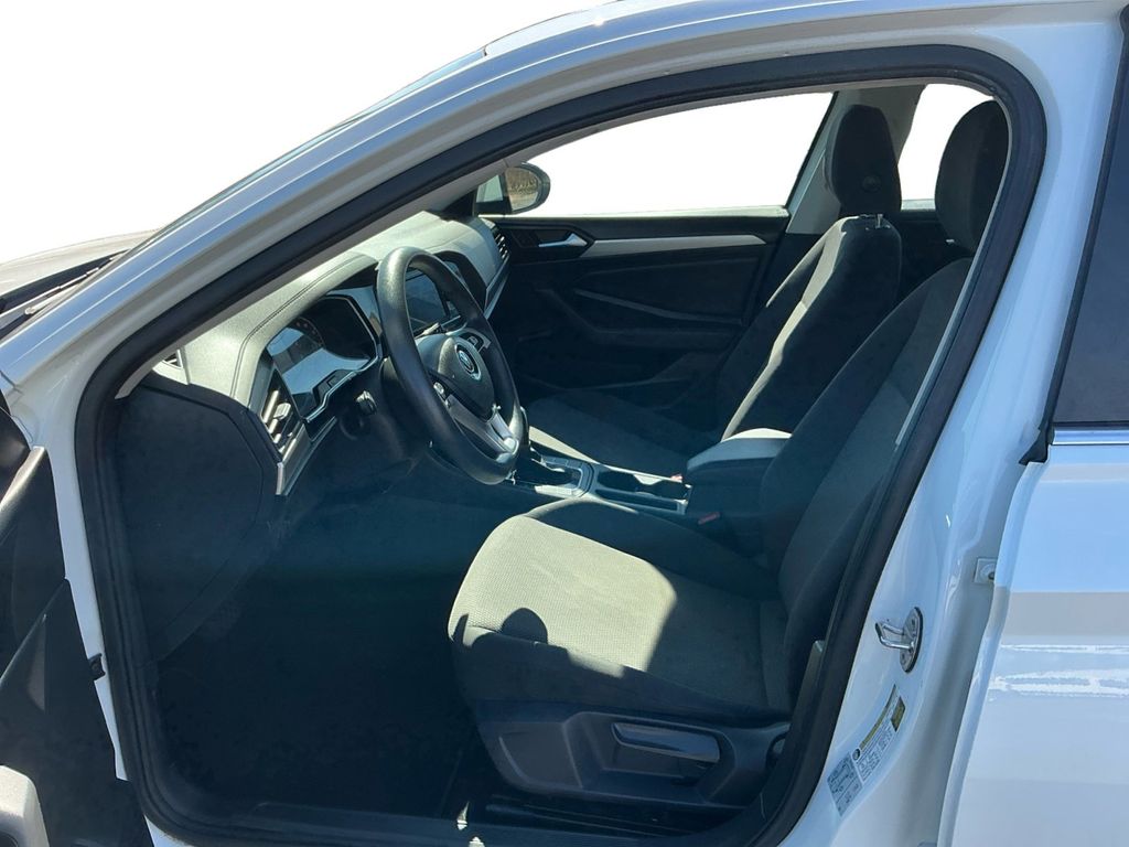2019 Volkswagen Jetta 1.4T S White 1.4T S FWD 8-Speed Automatic with Tiptronic 1.4L TSI Cloth, 4 Speakers, 4-Wheel Disc Brakes, ABS brakes, Air Conditioning, Alloy wheels, AM/FM radio, Brake assist, Bumpers: body-color, Cloth Seat Trim, Delay-off headlights, Driver door bin, Driver vanity mirror, Dual front impact airbags, Dual front side impact airbags, Electronic Stability Control, Exterior Parking Camera Rear, Front anti-roll bar, Front Bucket Seats, Front Center Armrest, Front Comfort Seats, Front wheel independent suspension, Fully automatic headlights, Illuminated entry, Low tire pressure warning, Occupant sensing airbag, Outside temperature display, Overhead airbag, Panic alarm, Passenger door bin, Passenger vanity mirror, Power door mirrors, Power steering, Power windows, Radio data system, Radio: Composition Color w/6.5" Touchscreen, Rear anti-roll bar, Rear reading lights, Rear window defroster, Remote keyless entry, Speed control, Speed-sensing steering, Split folding rear seat, Steering wheel mounted audio controls, Tachometer, Telescoping steering wheel, Tilt steering wheel, Traction control, Trip computer, Variably intermittent wipers, Wheels: 16" Silver Rama, Cloth.