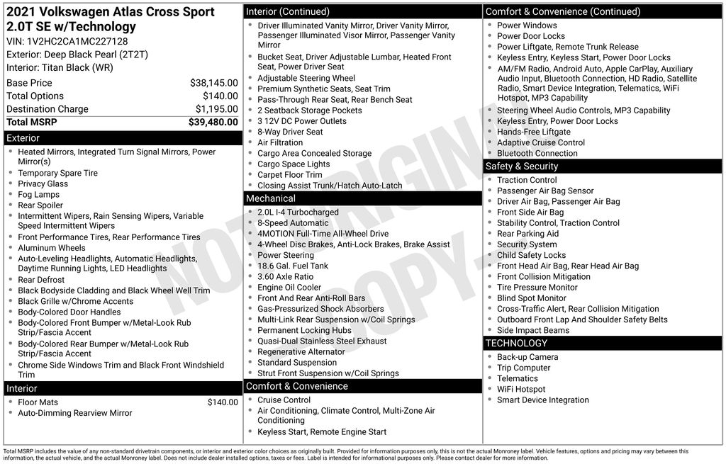 2021 Volkswagen Atlas Cross Sport 2.0T SE w/Technology SUV TSI